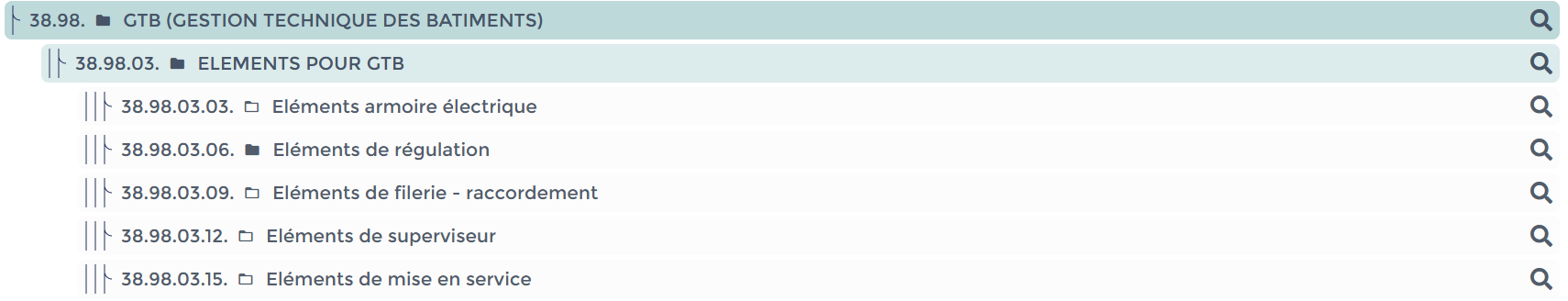 Voici un aperçu de la nomenclature Batiprix relative à la GTB :