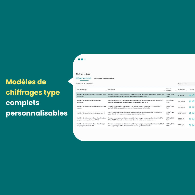 Accès à des chiffrages types personnalisables